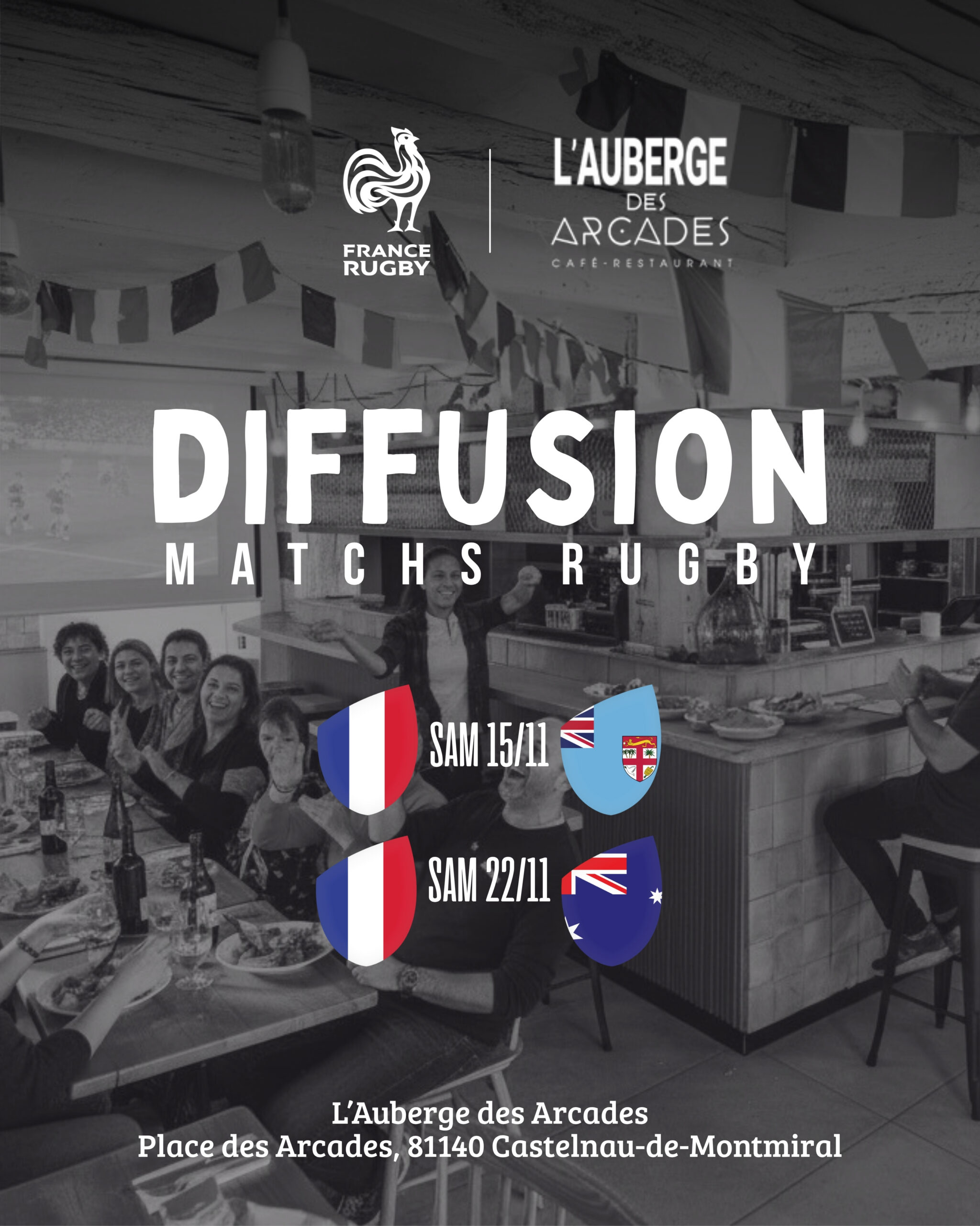 Les Bleus s’invitent à l’Auberge des Arcades : Retransmission des matchs de Rugby !