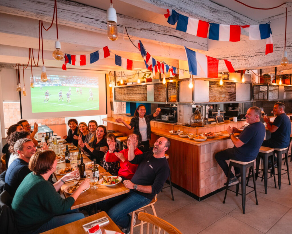 Sur grand écran, vibrez au rythme des passes et des essais tout en savourant nos tapas, assiettes à partager et notre carte, le tout préparé maison par notre chef et son équipe.